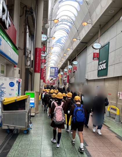 「大阪くらしの今昔館」を見学した後、日本一長い天神橋筋商店街を見学してから、学校に戻りました。