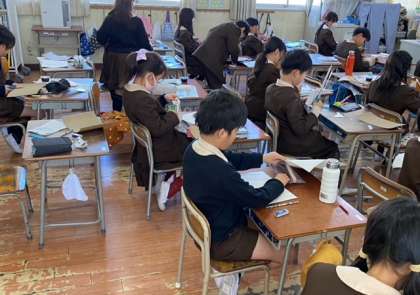 下書きをした図をもとに、版画のベースとなる型紙を切って作りました。