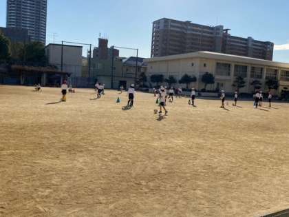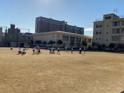 体育では、サッカーゲームに向けて、ボールを蹴ったり、パスを回したりする練習をしました。
