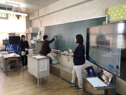 ハングル文字で名前を書いたり、韓国語のあいさつをしたり、韓国語の単語でビンゴゲームをしたりしました。