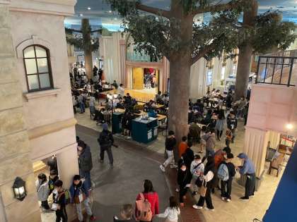 2階からです。体験時間待ちで食事をしています。時間を上手く使っています。