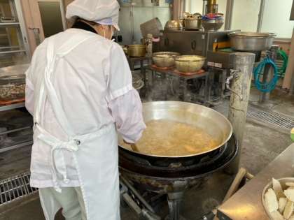 今日の給食メニューの調理をしているところです。