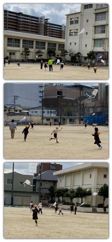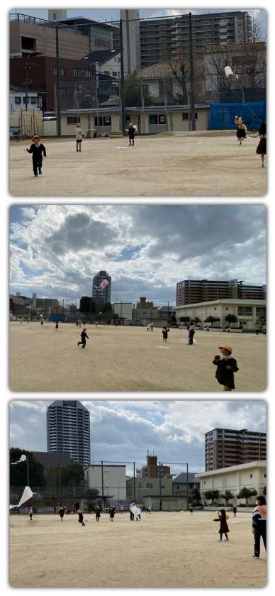 体育の時間に、めいいっぱい走ったにも関わらず、子どもたちのパワーは、たこあげのときも、精一杯走る元気でまだまだ溢れていました。