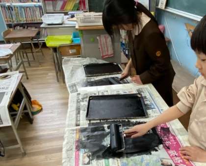 図画工作では、紙版画を作っています。