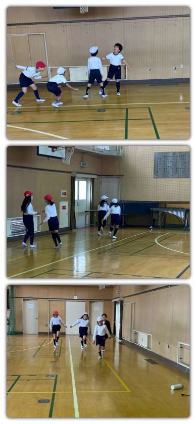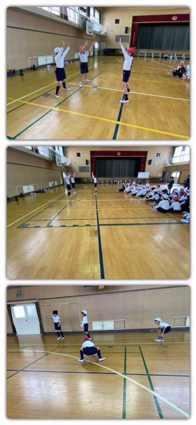 今日は、グループでお気に入りのカードの動きを考えて、発表しました。ひねりやスローモーション、ストップモーションを取り入れて、それぞれのチームの工夫を楽しみながら発表しました。
