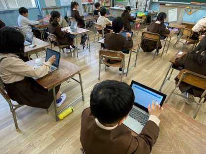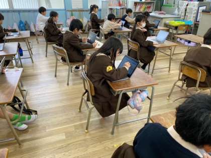 タブレット端末を使って、1年生の思い出の作品づくりにチャレンジしました。