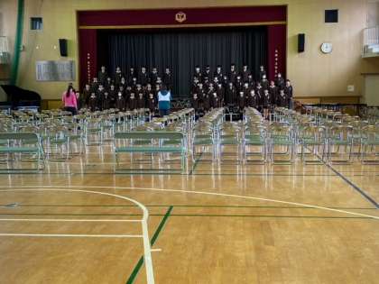 体育館ではじめて、卒業式の練習をしました。
