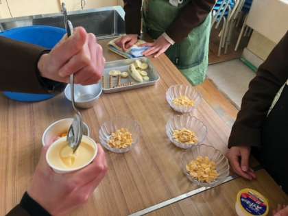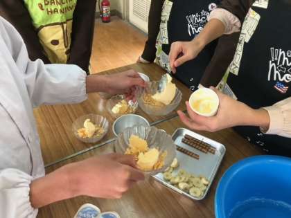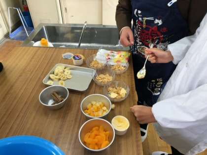 会話を楽しみながら、簡単にできるおやつメニューをつくって、美味しくいただきました。