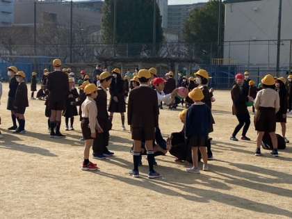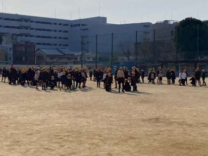 今年度最後の児童集会をしました。今日は、「バクダンドッカーンゲーム」をしました。