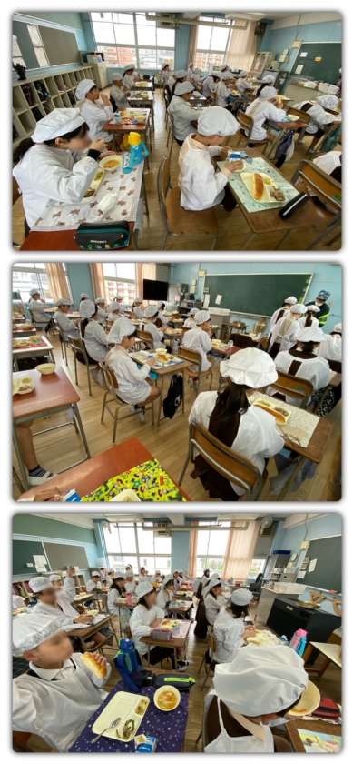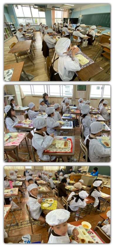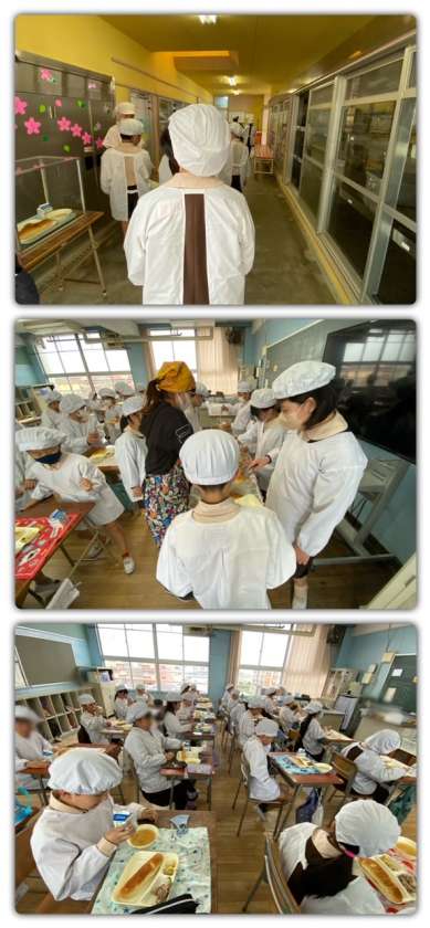 進級して新しいクラスでの初めての給食でした。