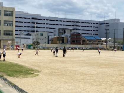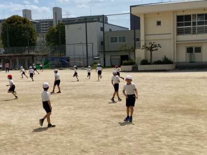 体育では、鬼ごっこをして体をならしてから、ボール運動をしました。