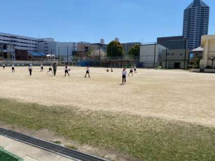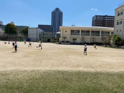 体育では、並び方の学習をした後、リレーのバトンパスの練習をしました。