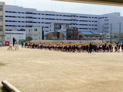 児童朝会では、校長先生から4つの挨拶「おはようございます」「ありがとう」「ごめんなさい」「さようなら」を言葉に出して伝えることを大切にしましょうと言う話がありました。