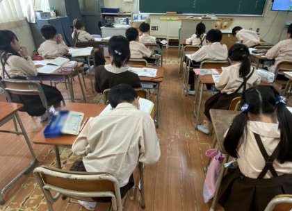 国語では、場面分けをして、登場人物の気持ちを文の表現から読み取っています。