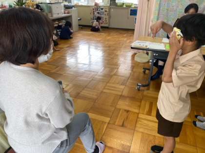 今日は、1・2年生が、視力検査をしました。
