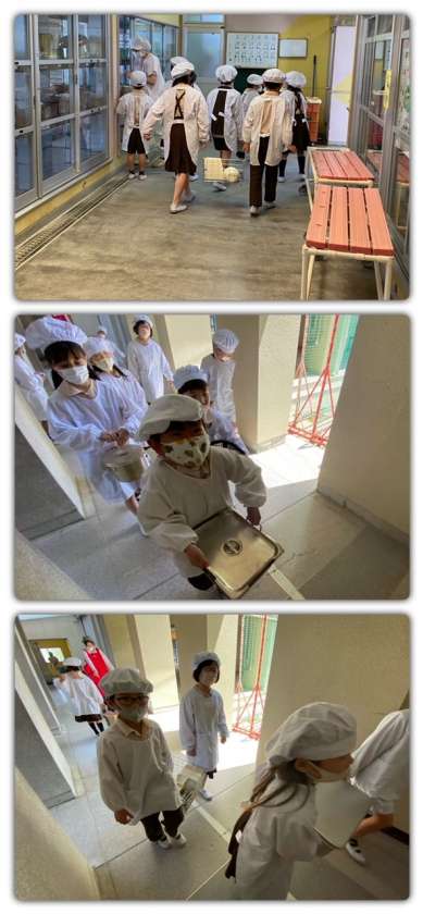給食の配膳をがんばっています。