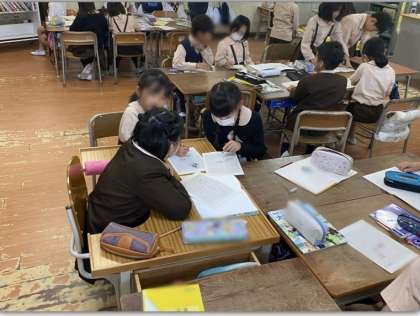 地域にある建物や店などを調べています。まずは、登校ルートにあるものを調べ、地図に書き込みました。