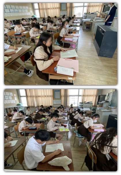 都道府県の場所や名前を確認しながら、プリントに書き込んでいきました。