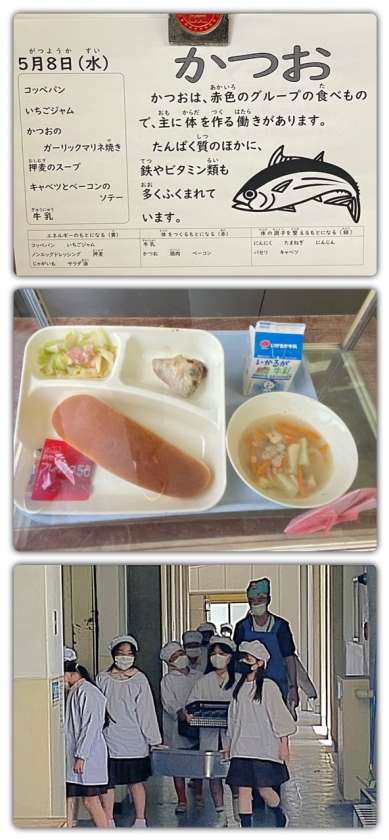 今日は、4月末にミマモルメでも連絡しましたように、グリーンアスパラガスの流通量が少なく、調達が困難なため、グリーンアスパラガスのソテーからキャベツとベーコンのソテーに変更になったメニューです。