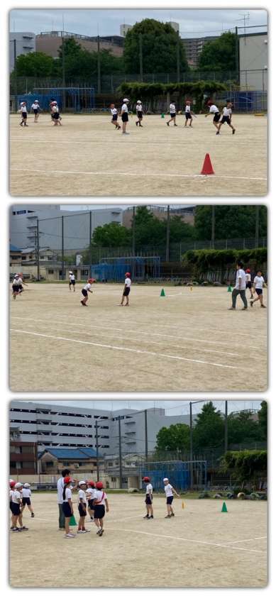体育では、リレーのバトンパスの練習をし、チーム対抗でリレーのタイムをはかりました。