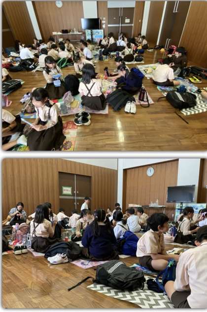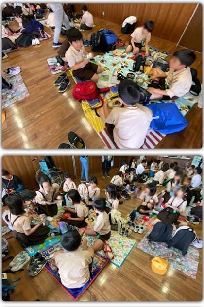 天候が良すぎて外は暑いため、館内をお借りして、みんなで美味しくお弁当をいただきました。