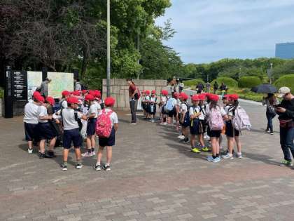 本日は、2年生が大阪城公園へ校外学習に出かけています。