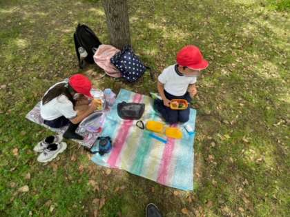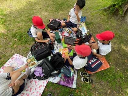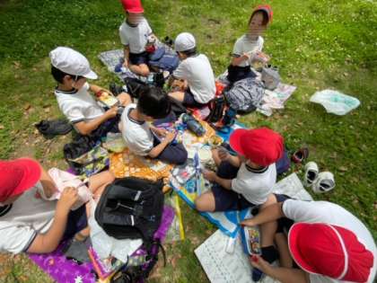広々とした芝生の上で、お弁当をいただきました。時より爽やかな風があり、快適なひと時です。みんな楽しんでいます。