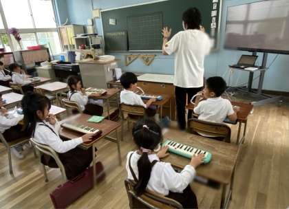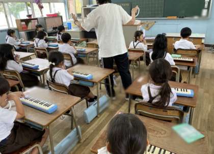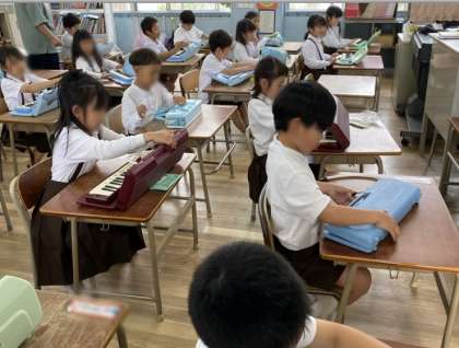 音楽では、鍵盤ハーモニカを使って学習しました。