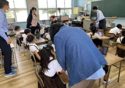 ICTアシスタントの方に協力いただいて、タブレット端末の入り方、使い方について、学習しました。