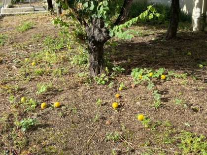 梅の花が咲いた後、先日から梅の実がたくさん実っていましたが、昨日の雨で、たくさんの実が落下してしまいました。落下した実も、ほんのりと甘い香りがしています。