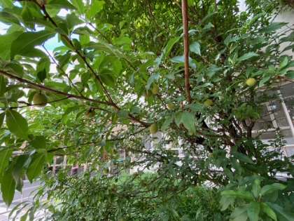 運動場側の梅の実は鳥に食べられたり、落下したりしていますが、玄関側の梅の実(3枚目の写真)は、まだたくさん木についています。