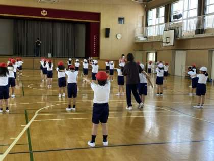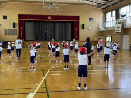 18日から始まるプールの学習に向けて、入り方を覚えたり、プールの体操をしたりしました。