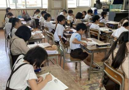 算数では、使った数や残った数から、もとの数を求める学習をしました。テープ図を使って考えました。