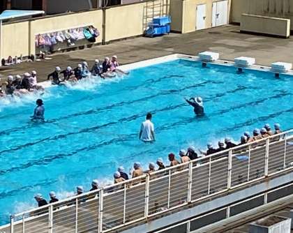 昨日は、雨と寒さにより、プール学習を始められませんでしたが、今日はとてもよい天気で、プールの学習をスタートしました。