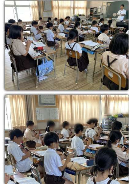 音楽では、リコーダーで高いミやレの音を中心として、演奏しました。