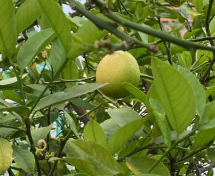 ほとんどの実は、まだまだ小さいですが、1つだけとても大きなレモンができ始めています。