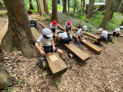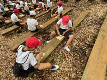 集中して頑張っています。ただお箸を作るだけでなく、デザインを考えて、創造力をはたらかせて??