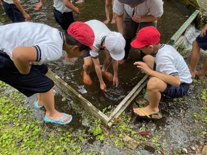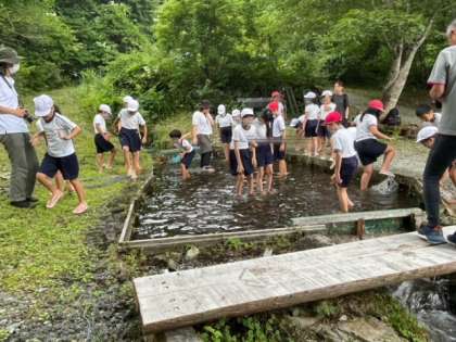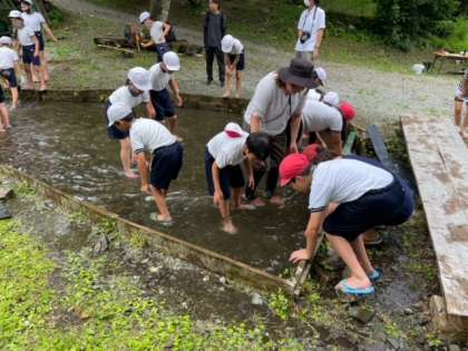 魚つかみに大興奮です。川に入った当初は、足が冷たい、痛いと言いながら楽しそうな顔をしています。