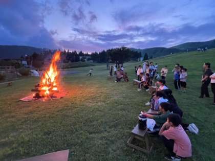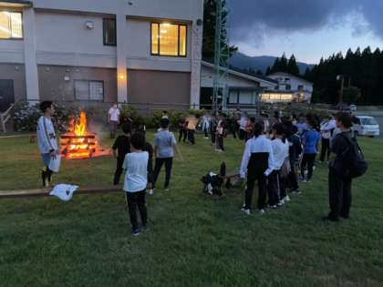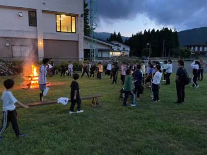 キャンプファイヤーが始まりました。少し風があり、火から離れて楽しみました。