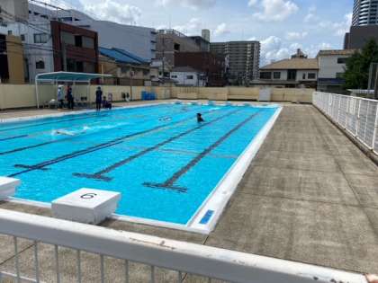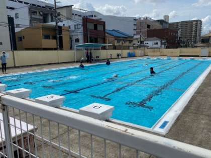 水泳記録会に向けた練習をしました。水分補給をしながら、しっかりと泳いで頑張りました。