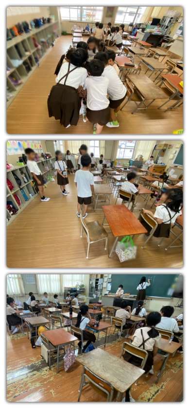 夏休みが終わって、通学路の確認やルールの確認などをしました。その後、班ごとに、ふれあいのできるゲームを考えて行いました。