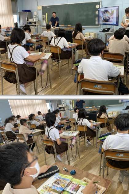 外国語の学習は、C-NETの先生にも入っていただいて、“Let’s see the world.”の学習をしました。