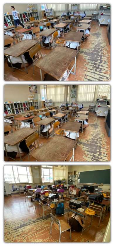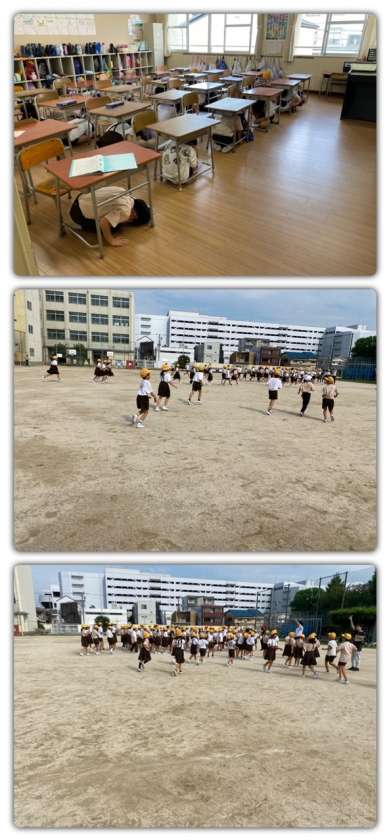 事前指導をしておき、放送を聞いて、自分たちで判断して避難をする練習をしました。耳をすましてよく聞いて、行動することができました。