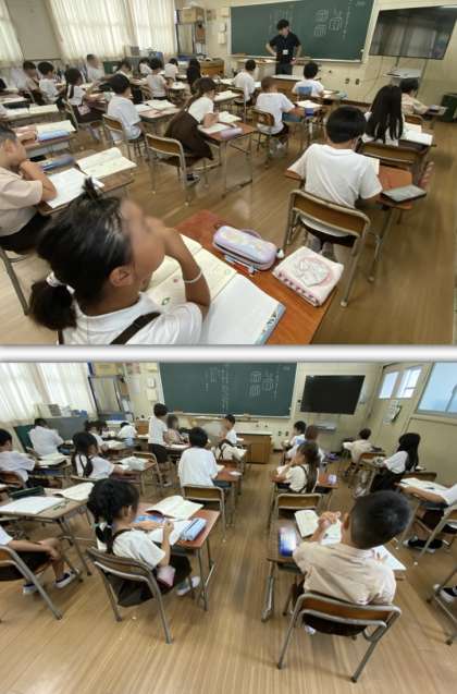 国語では、果物や虫、動物、野菜など、それぞれに該当する名前を見つけていきました。