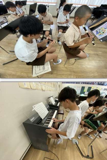 おんがくでは、合奏をしました。全体で合わせたり、楽器ごとに練習したりしました。