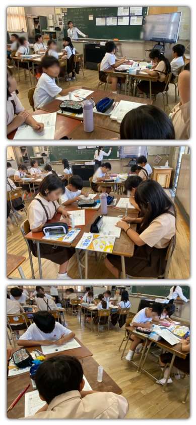 今日の算数の学習は、教育実習で来ている実習生の先生と一緒にしました。