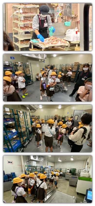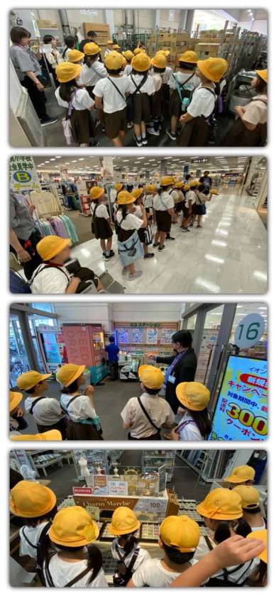 総合型スーパーマーケットの1〜3階の食品や日用品の売り場の見学の他、1階のバックヤードも見せていただきました。ネットスーパーの売り上げは、近畿で1番多いということも聞きました。また、果物や野菜、魚などのパックづめや、保管の方法、ごみの量も測ること、トラックからの搬入の様子など見せていただきました。