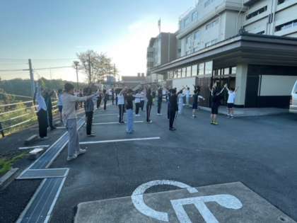 朝のつどいす。みんな元気な声で挨拶をして、ラジオ体操をして今日一日の活動開始です。