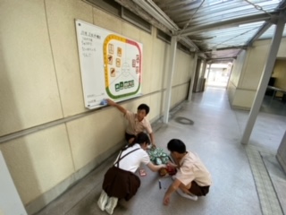 給食の時間に給食についての放送を毎日しています。他に、給食室前の翌日の給食の準備もしています。