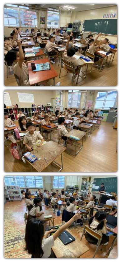 今日は朝から雨が降っていました。児童集会は教室で放送を聞いて行いました。集会の内容は、これは誰でしょうクイズでした。よく聞いて、答えだと思った番号を指で出して答えていました。